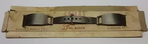 Stainless clasp watches also existed. This reads: The Captain, GEMEX CO, Chrome Steel, USA Pat. Pending near the buckle.