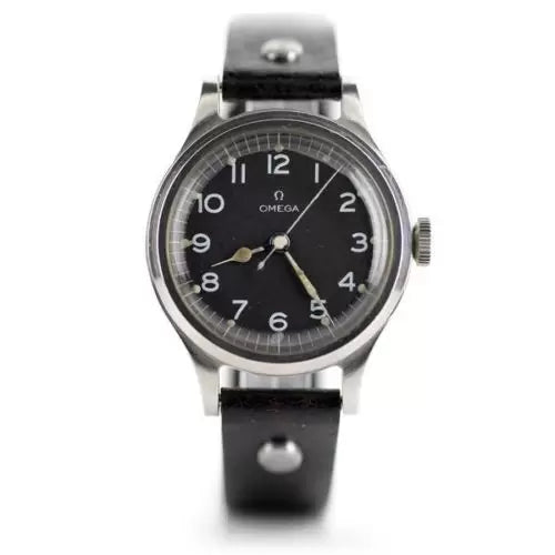 The MoD used this new, larger, 36mm diameter Dennison stainless steel case for all their remaining stock of second world war watches. This new case replaced the low-cost alloy cases which the WW2 watches were originally issued with and allowed the RAF to keep using the high quality movements.
